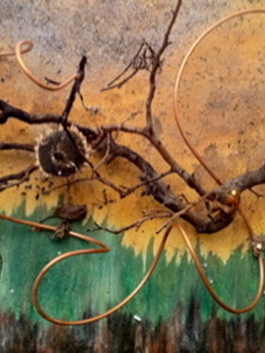 La natura appunto quale ordito di visione, quale rispondenza percettiva e di aderenza prensile alle cose che raccoglie e dispone. Per quanto trasfigurate nell'astrazione le opere dipendono da ciò che l'artista vive e vede.
