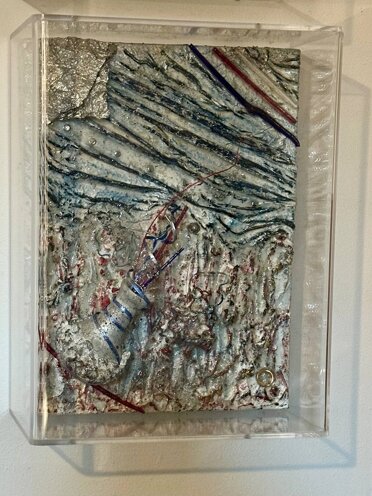 Ogni elemento si sigilla nel provvisorio, nell'ordito e precar-io, nel compiuto ma inesausto. Ciascuno ha un rapporto onnicomprensivo con la vita. Di qui la denominazione che l'artista ha dato ai suoi contenitori trasparenti, i Box-Es, quali rappresentazioni statiche dell'es-sere in costante divenire. L'opera, insomma, accade di fatto e in essa ogni mistura di colore e materia, ogni aggetto di forme e oggetti traspare, si coagula nel dato immaginativo trovato o affiorato dal gioco di fantasia come dalle pulsioni intime che l'artista insegue e cattura. Fantasie e pulsioni, con forte astrazione di forme, che Tinamaria sollecita e consegna al mutevole e accumulante orizzonte compositivo. Eppure, non poco di questa maniera, di questo fare con astrazione e dare concretezza d'immagine si accorda con il senso visivo, vasto e onnicomprensivo, del paesaggio naturale.